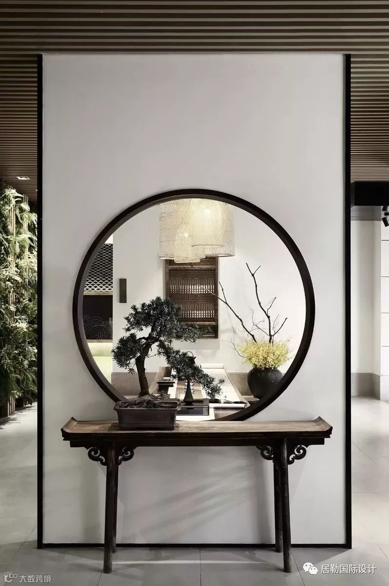 读书不管何时都是非常重要的事情,也是修身的重要途径。迎宾门采用中国传统的月门来规划空间,月门通常开于院墙,形如满月。透光显幽静。设计强调儒家的仪式感和尊贵感,人在入廊穿月的过程中,产生层层递进的空间体验,离开纷扰的外部世界,回归家的平静。