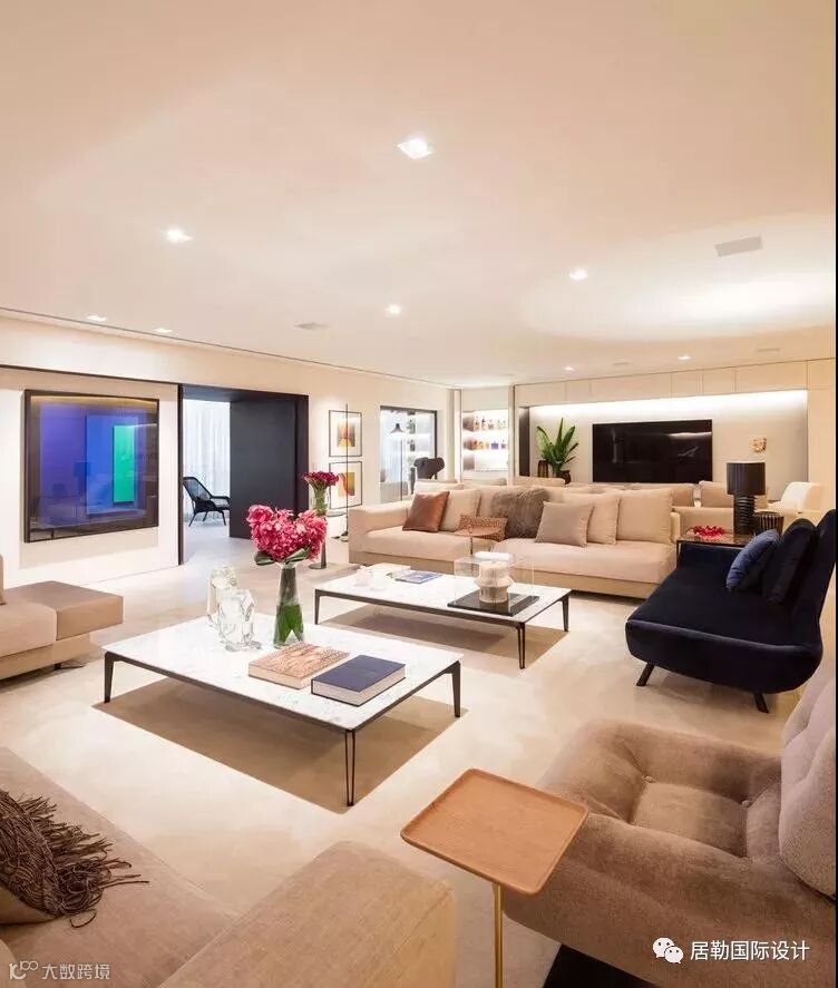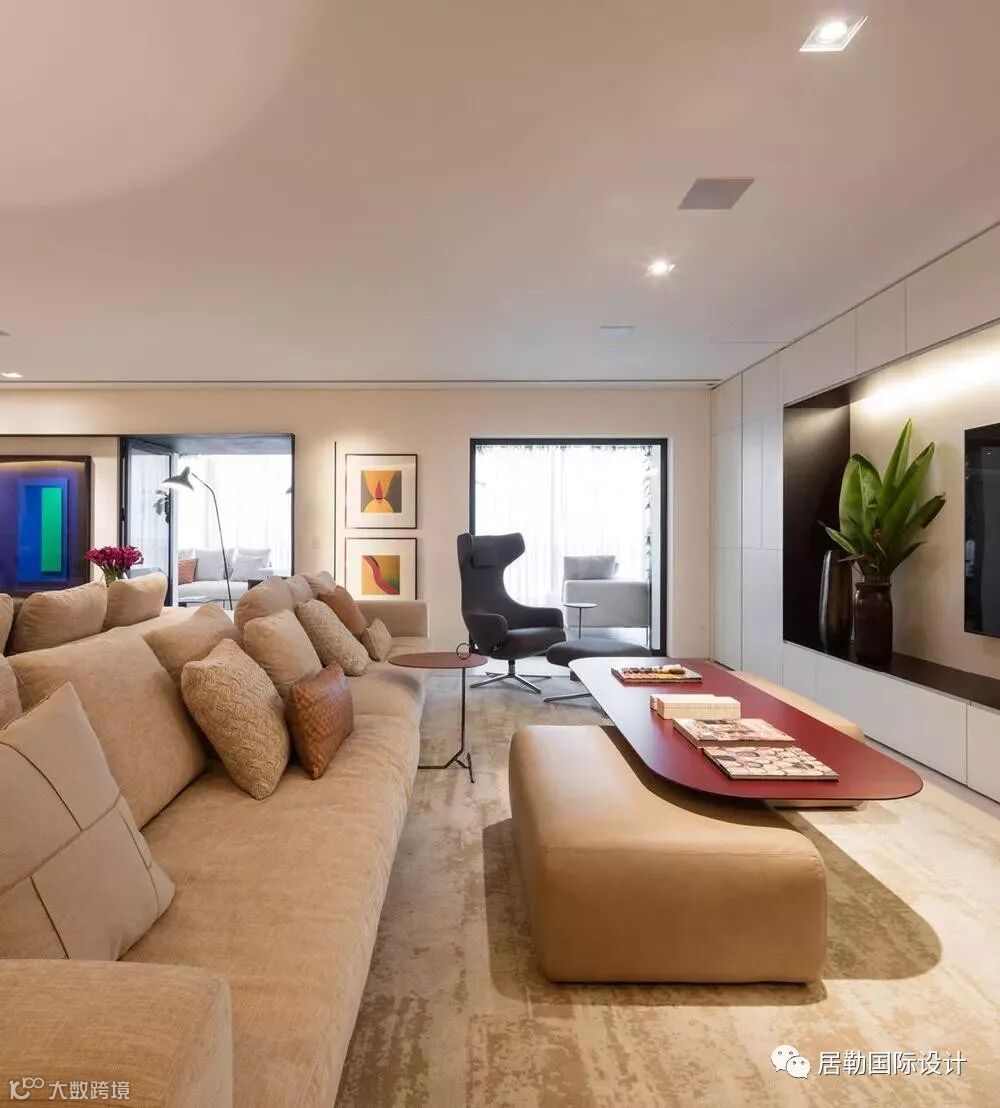 600m² 顶级豪宅打造成超级艺术之家!艺术品与泳池?两个看似完全相悖的物体,却在Fernanda Marques的设计中融为一体。这个起居室中构建了泳池的独特公寓,各类家具以其独特的布局为每件艺术品提供了足够的思考空间,室内洁净的大理石表面体现了现代主义室内装潢之美。