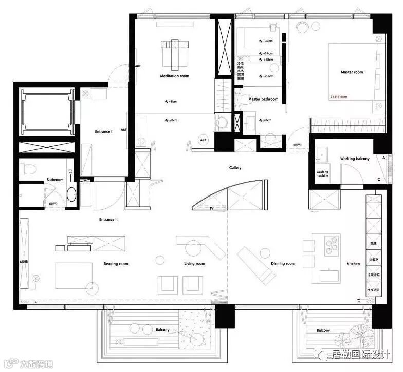 丰富多变的空间层次及材料运用,再次体现低度设计的精随。空间分割线条比例为主的现代主义,简约的宋代美学营造雅致的细节及氛围,传递著精神层次的侘寂(Wabi-Sabi)文化,在这空间裡,和谐的呈现。