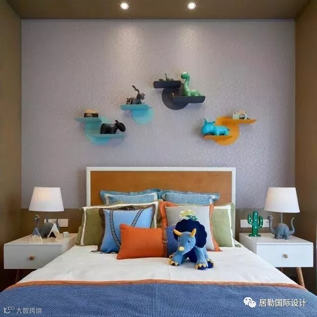 男女主人和一双儿女的房间则在最上层。孩子的卧室布置得各有个性又落落大方充满童趣,大人的房间则是将家的温馨发挥到极致。