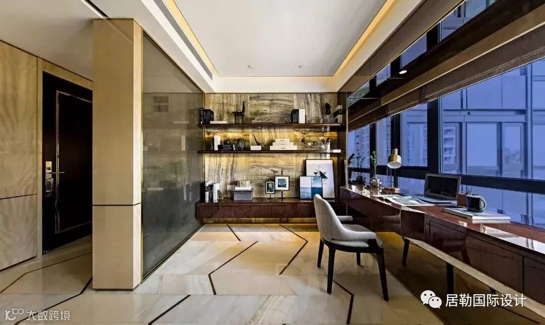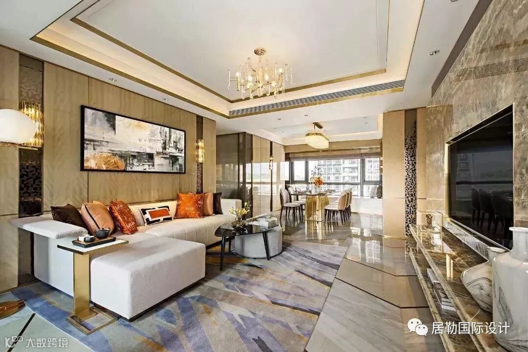 此户型是京基御景峰项目中最大的一套创意样板房,DHO别具匠心地运用几何拼接的艺术语言,为现代奢华的空间注入时尚创新的元素,让高品质都市生活富有盎然的艺术格调。