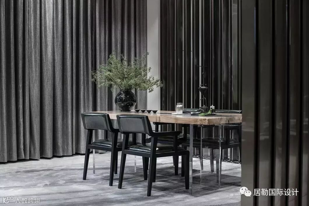 在设计中,中式元素与现代材质巧妙兼容,以简饰繁,线条明朗,呈现出大道至简、清远悠长的东方气韵。
