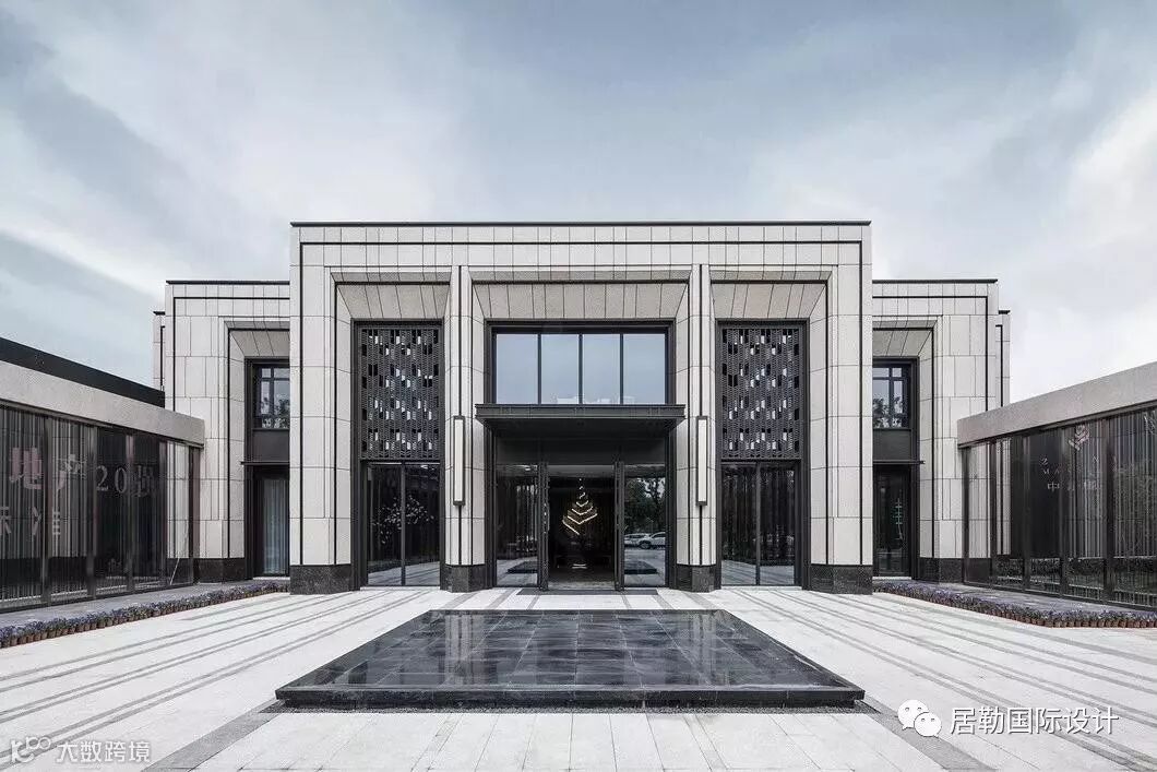 售楼处引用了中国传统院落样式,方正稳重,又有不同。设计于肃穆的中轴对称之中跳脱,照见生活的自在。
