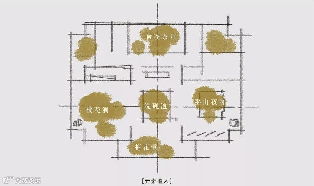 中南项目坐落城西,兼纳国际前景与千年底蕴。为了将文化、建筑、室内空间三者更好的融合,将东方的文心墨韵与现代的逸兴遄飞结合,设计师效仿文人骚客以景入诗、入画的情怀,将香山美景纳入空间设计,梅花堂、洗砚池、桃花涧、巫山夜雨……对照相应的景致提取元素,以此来定调不同空间的气质。