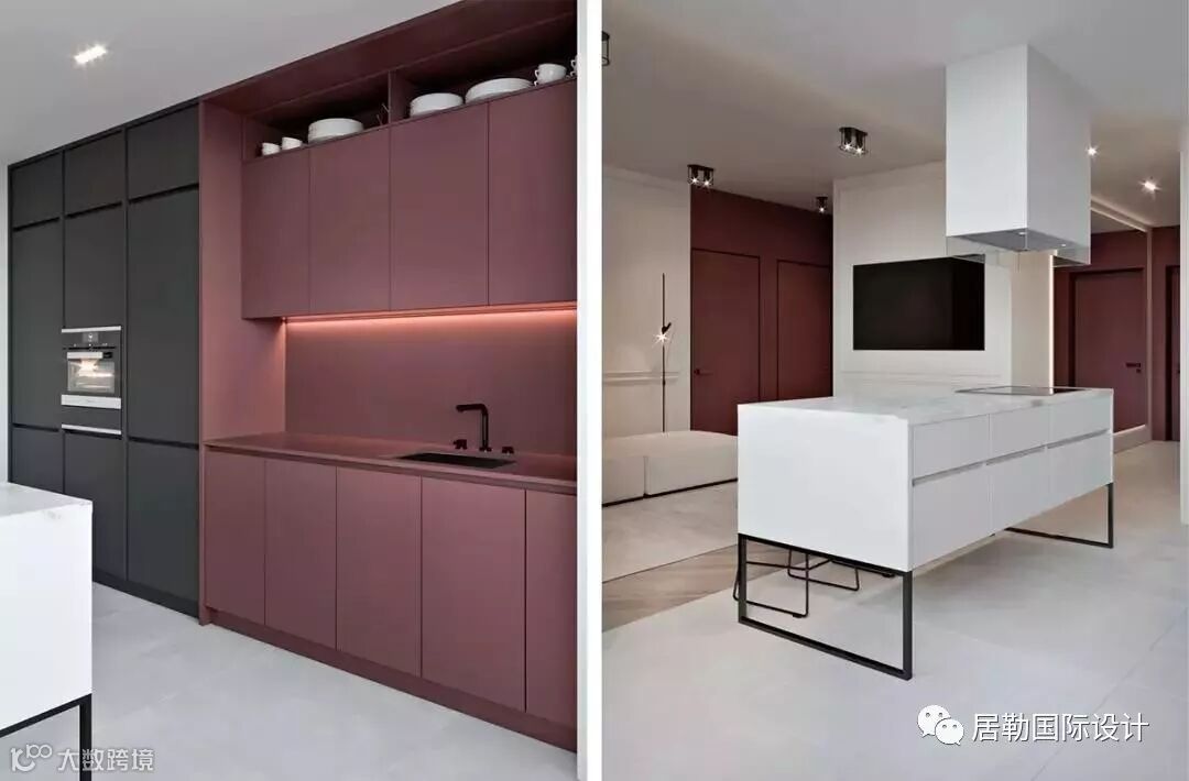 这是一套80平方米的公寓,装修时选择了波尔多(BORDO)为主色调,即红葡萄酒,的紫红色,再加上合理的布局和精致的设计,让其在现代风格的基础上又有古典的优雅,充满异域色彩。