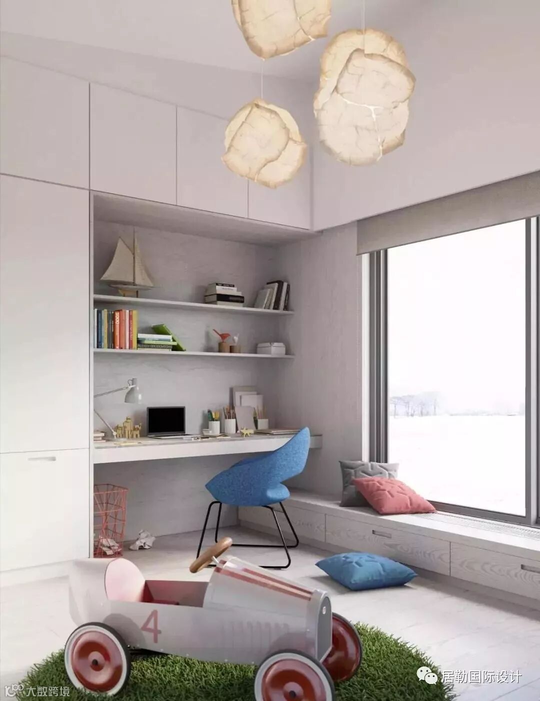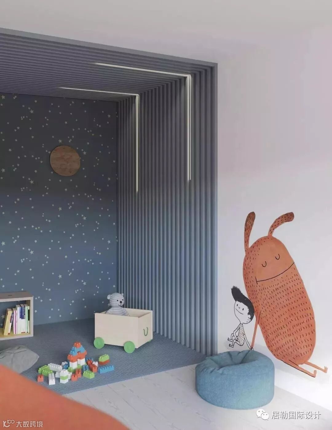 另一间儿童房拥有蓝色的小空间