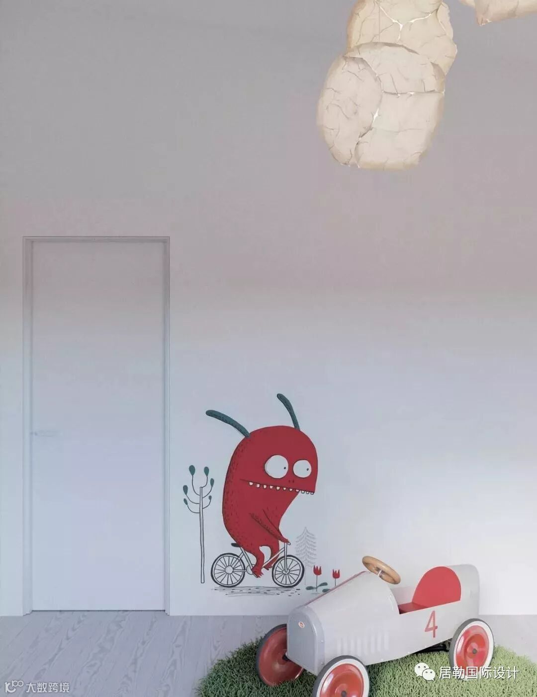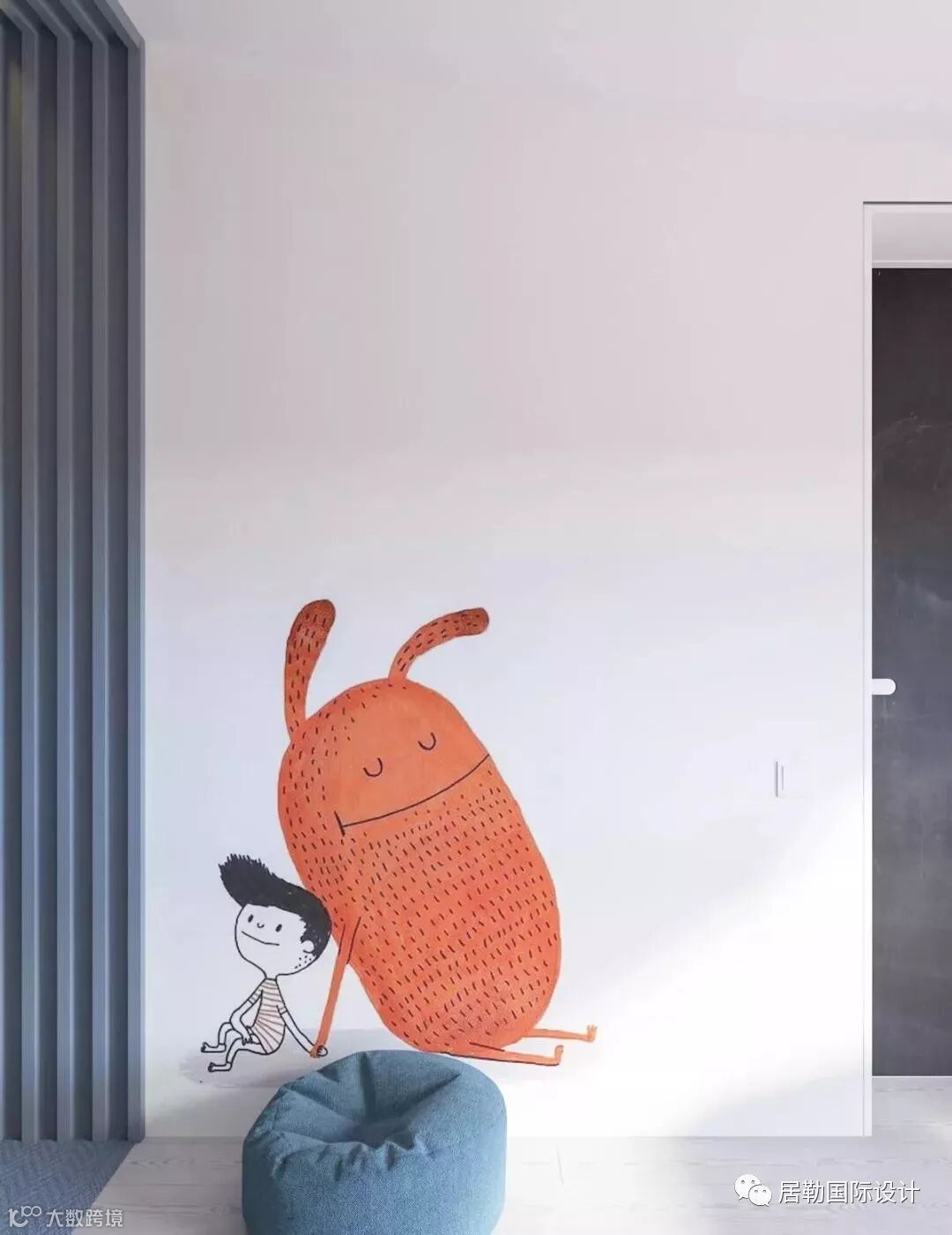 配上墙壁上的卡通图案