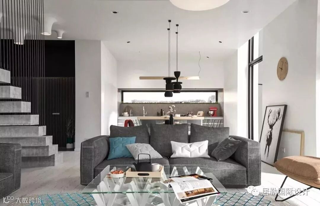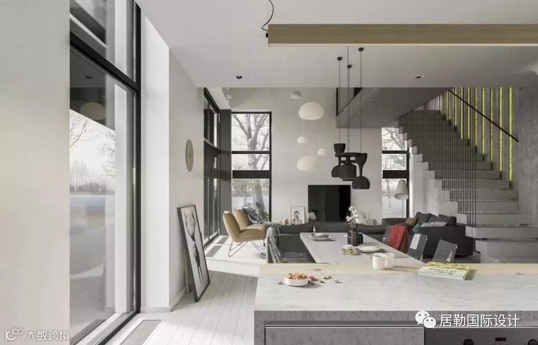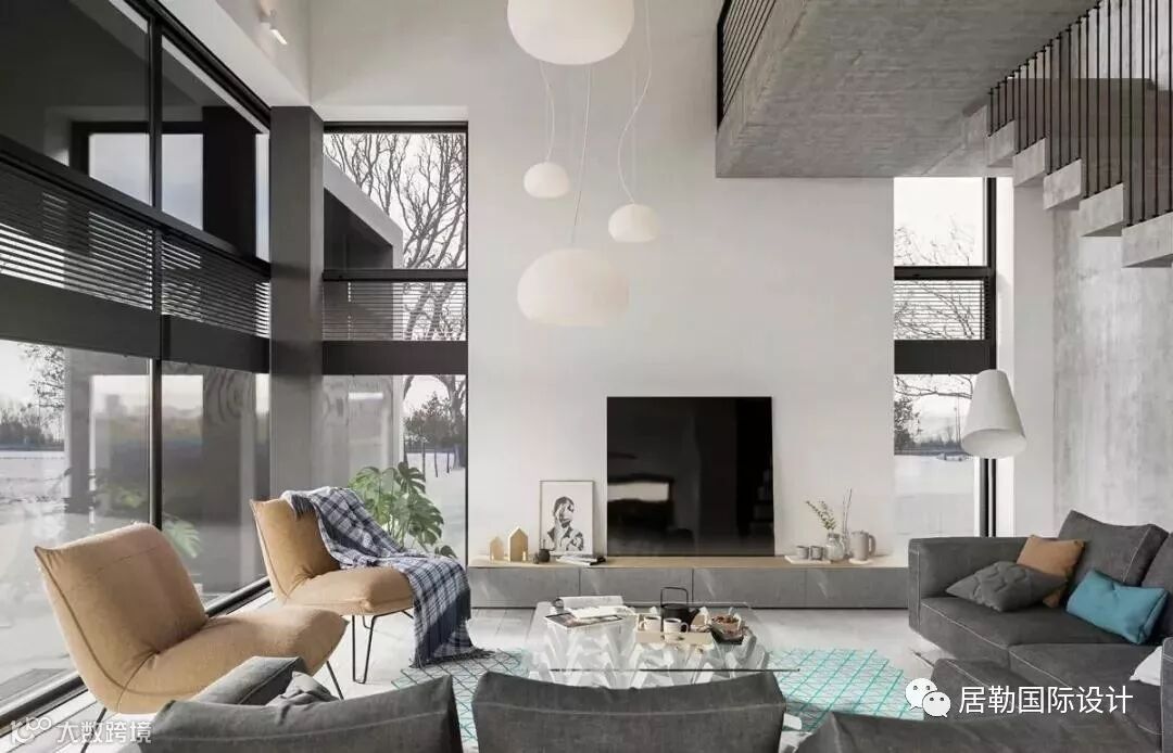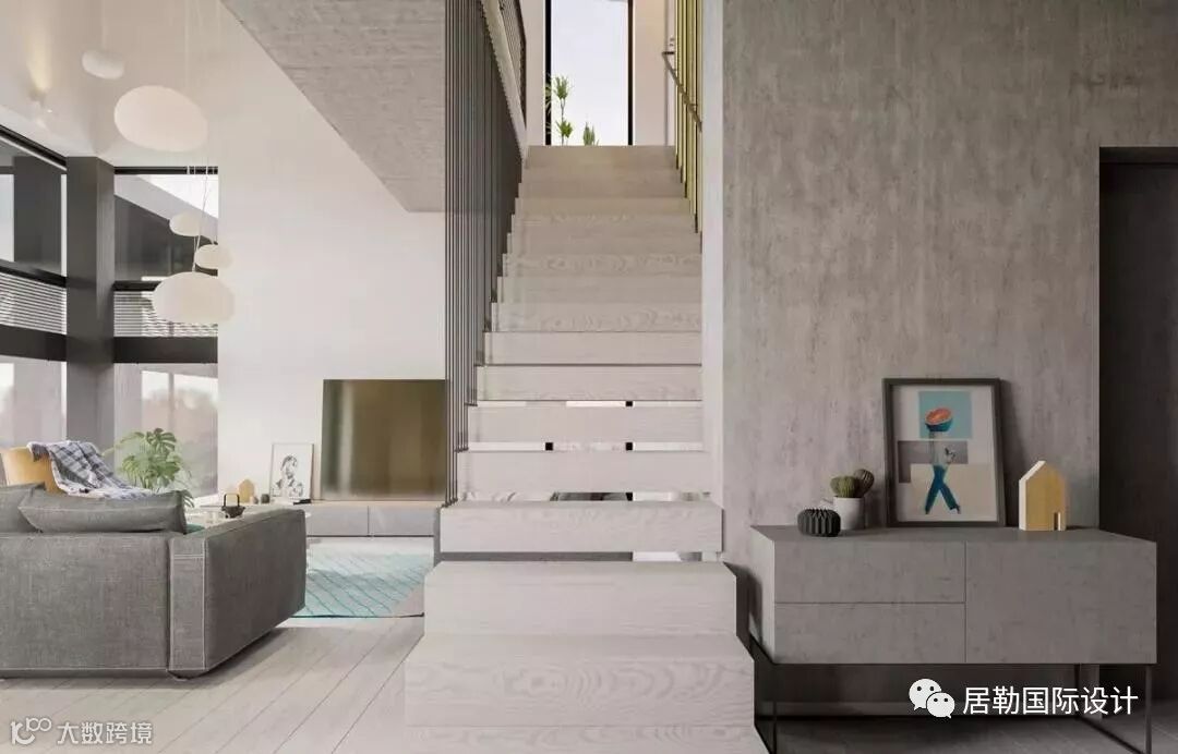 这所充满北欧风格的别墅以不同层次的灰色调为主