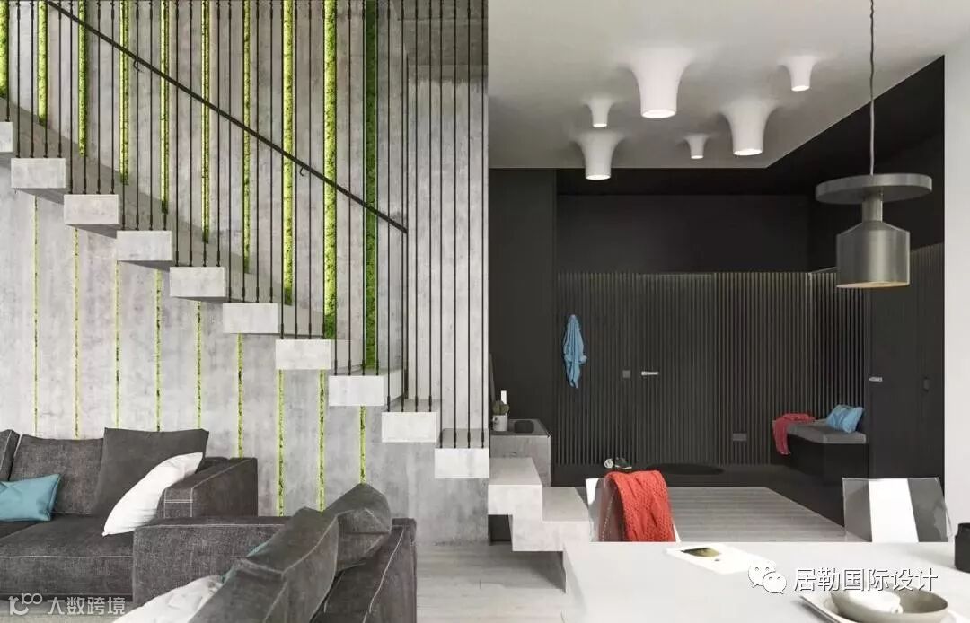 在灰色的墙壁内加入绿色元素