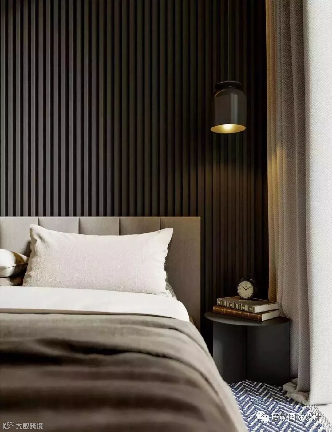 有条不紊的条纹床头背景墙