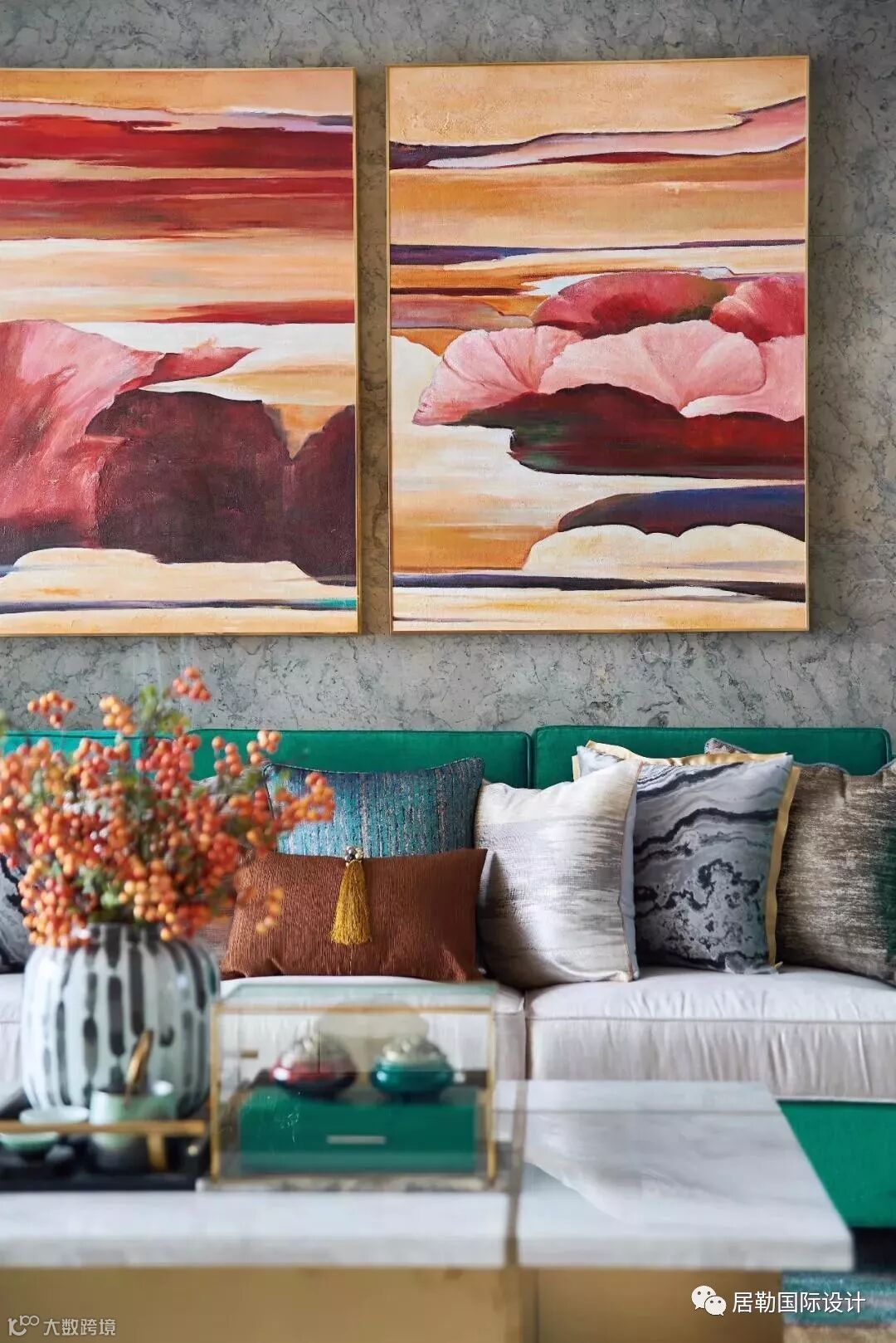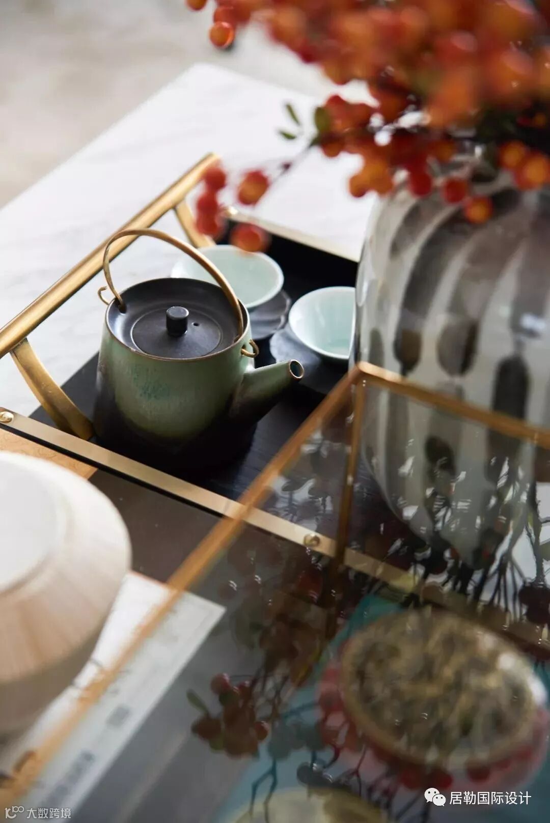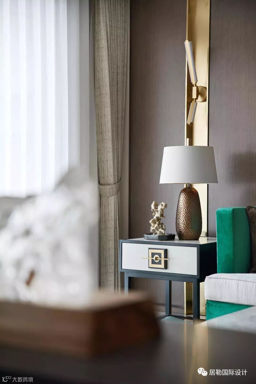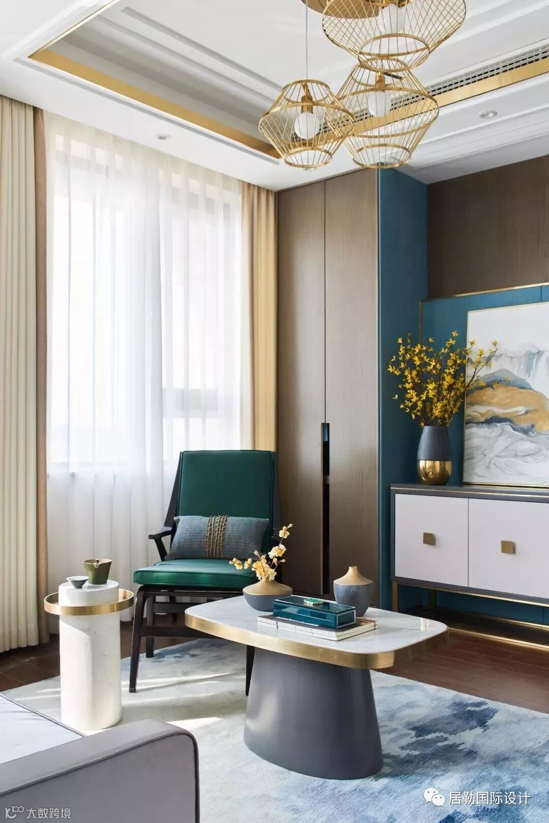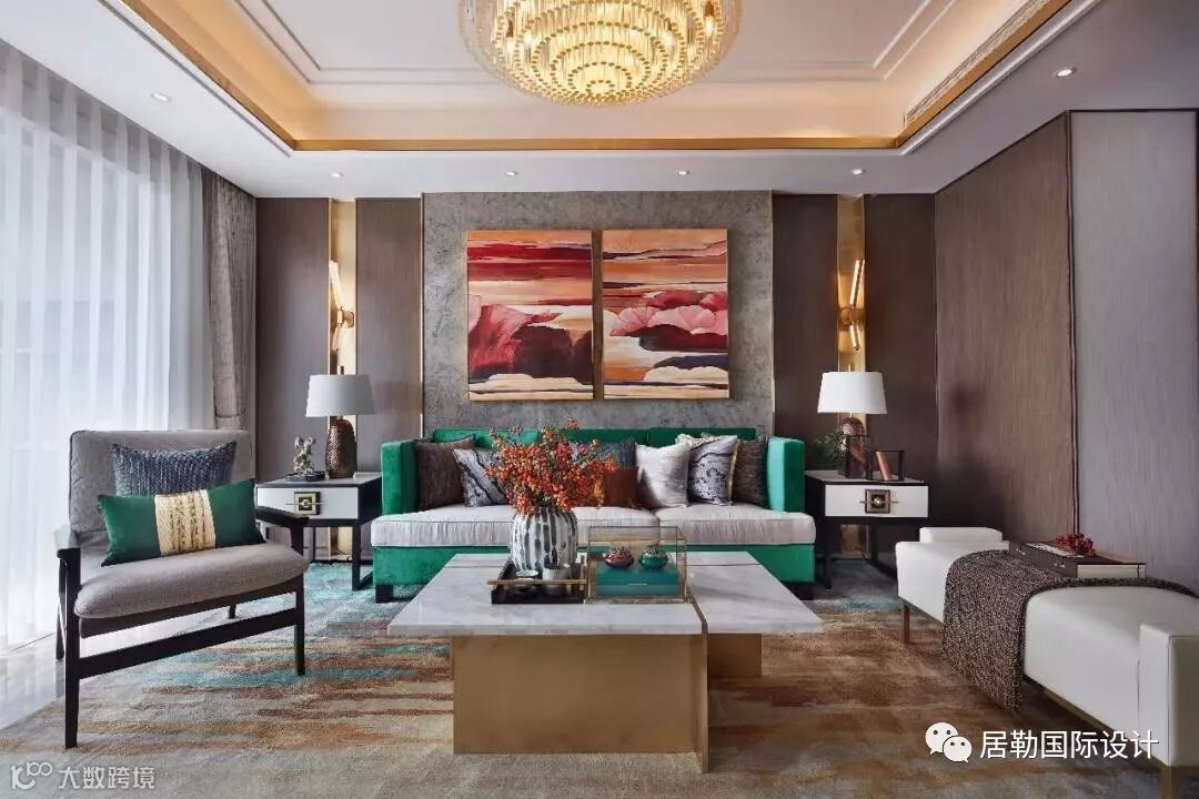时尚优雅是东方生活美学的基调,本项目在整个空间设计中,灯光色调为暖色调,再运用纯粹绿和蓝的跳跃、点缀中国经典的红色,纤细的金属条为单调的背景增添了整体又丰富的视觉体验。