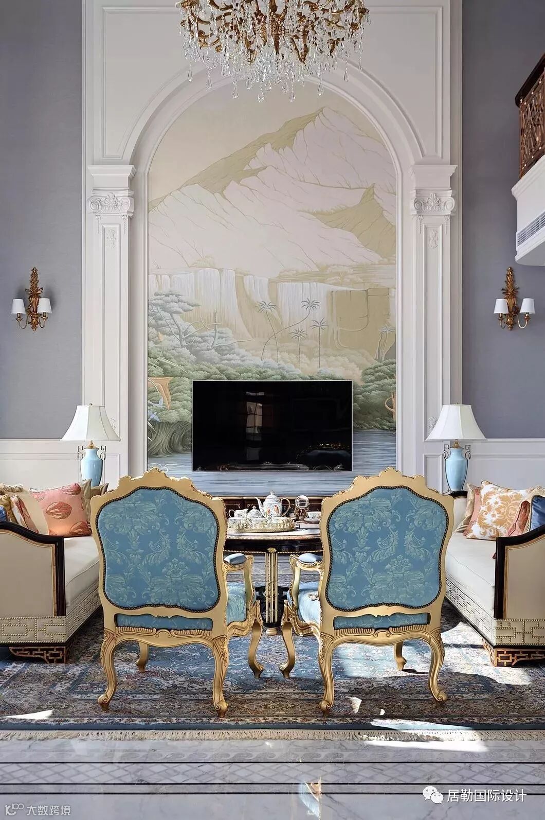 整体色调打破传统法式风格,印象空间的设计师们大胆尝试运用蓝、紫、粉等令人舒服的浅色调融合到空间里,让人眼前一亮。