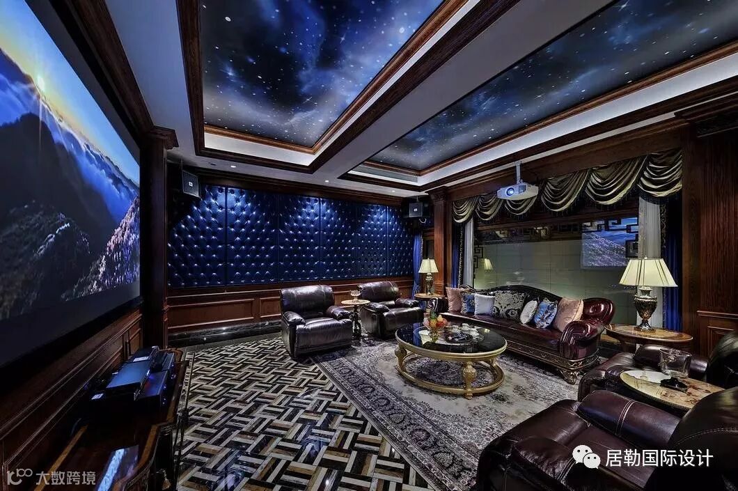 影音室采用了浪漫的星光顶和深色的墙面装饰,让空间更加静谧,营造舒适放松的观影氛围。