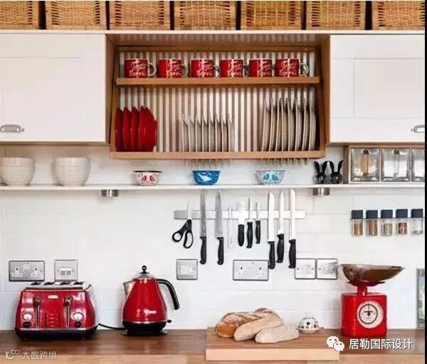只要有足够的心思,还有什么是不可以的呢。厨房中的厨具,都可以采用红的哦,让新年的气氛延续到房子中的每个角落里。