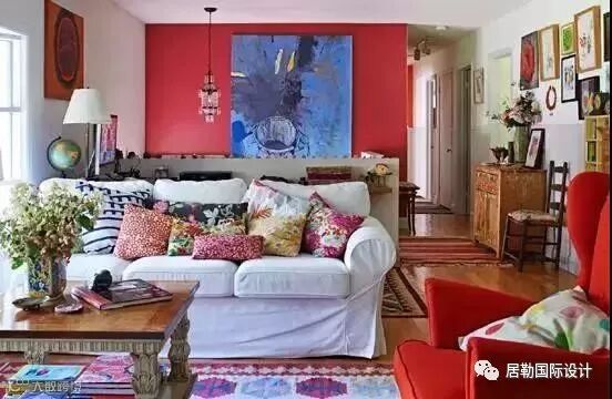 但如果墙面是浅色系,还是建议以点缀的方式融入红色,比如一些红色布艺品、摆件装饰等等,为空间适当地增色添彩。