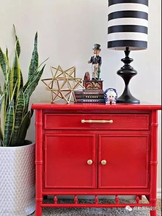 在墙边放上一个红色的角柜,复古的造型更具味道。或者你可以自己动手,为家中的小边柜刷上一层红色,换上新年的新衣。