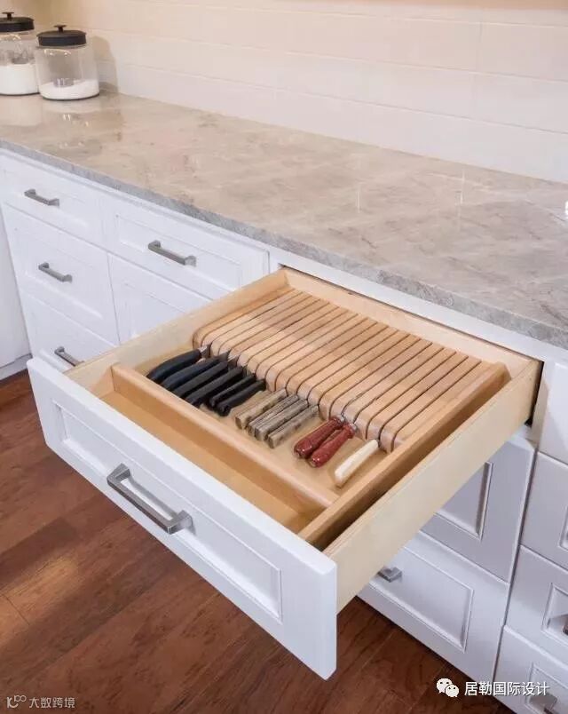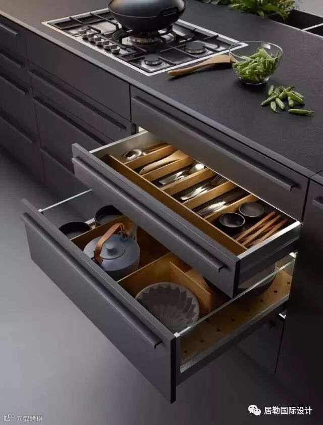 厨房空间不大,东西却不少,如果没有收纳好,加上油烟肆虐,厨房一定成了乌烟瘴气的地方,所以说,厨房装修首先考虑的问题是—收纳!