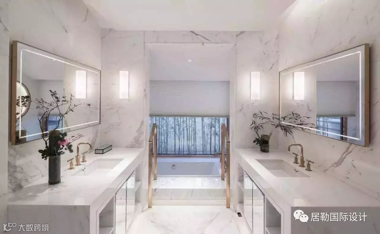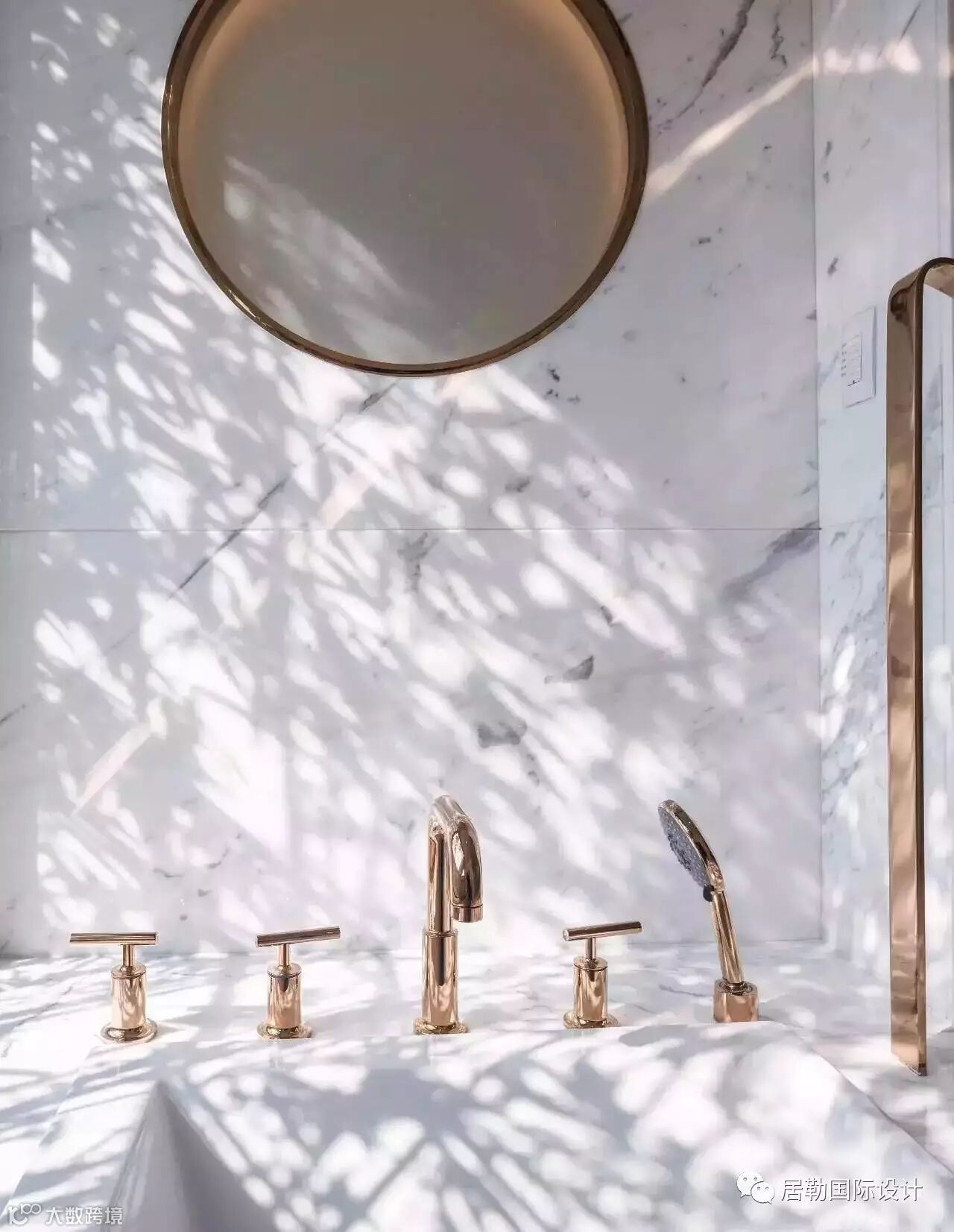 三楼主卧的卫生间,建筑原设计朝北,紧邻的衣帽间却朝南,为此他调换了这二者的位置,并把浴缸安置于卫生间最南端的窗下,还设计了落地窗,窗外露台上种有成排的紫竹,昼的阳光、夜的星光,皆透过竹影洒下。