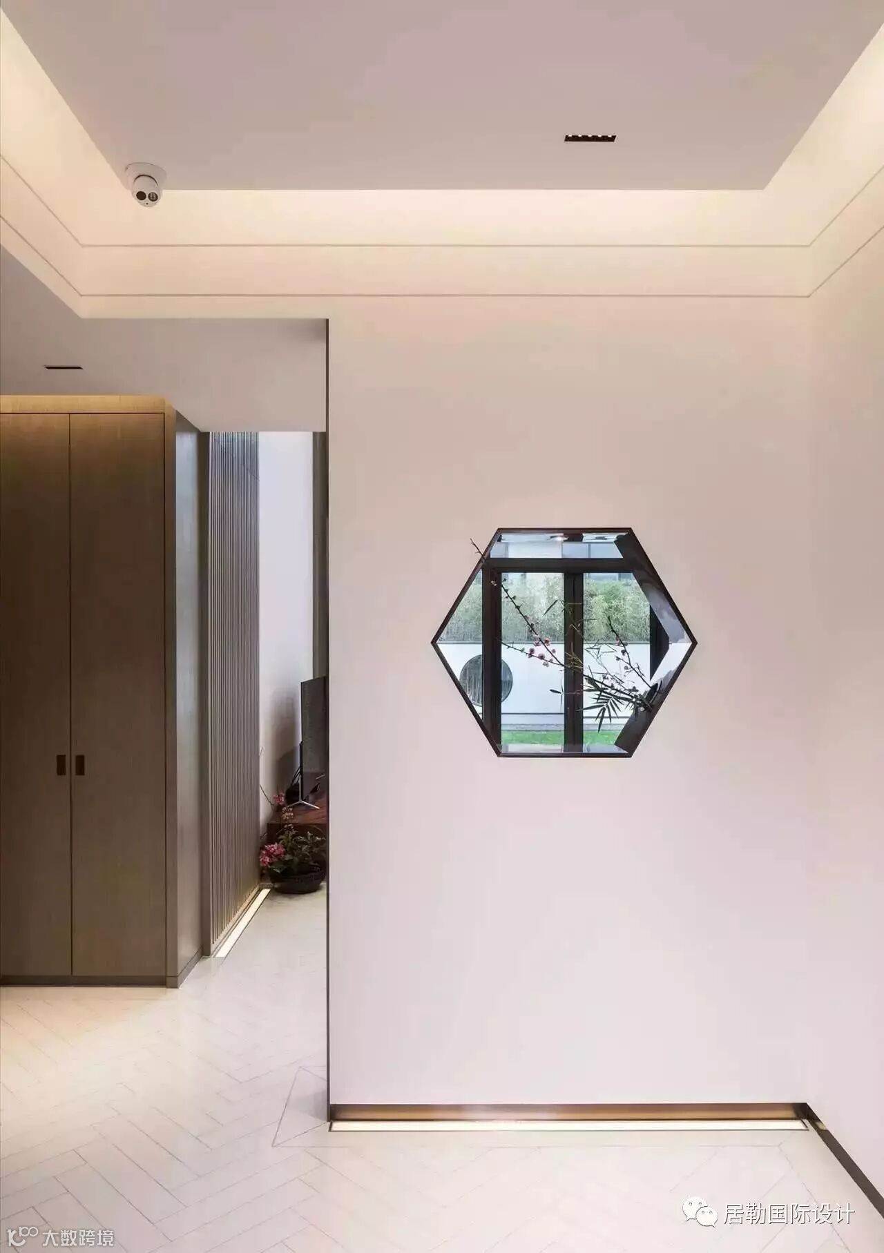 白色壁面只作了一圈细细的留缝作为装饰边框,就像中国卷轴画装裱时细细的留边,淡淡地呈现出中式的优雅婉约。