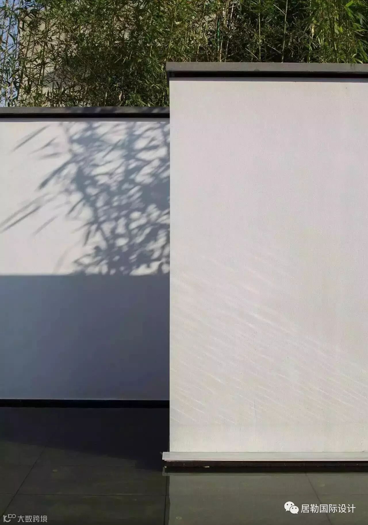 地下室庭院的立面设计采取传统苏州围墙的色彩关系,白色壁面,深灰色边框,天光通过色白的“围墙”反射到室内白色地面,又由白色地面反射到天花板和墙面,加之庭院之竹影于白墙,使人产生置身于地面一层而非地下室的错觉。