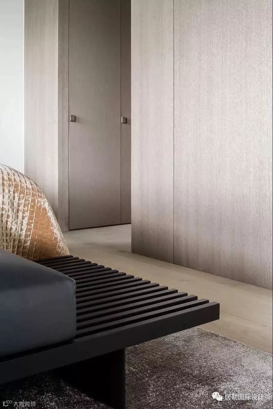 较深色踢脚线会有拉低层高的效果,当选用深色系踢脚线时,可以从统一性出发,选择和门框、地面或墙面一样的颜色。弱化踢脚线的存在,并且拓展了地面的空间。