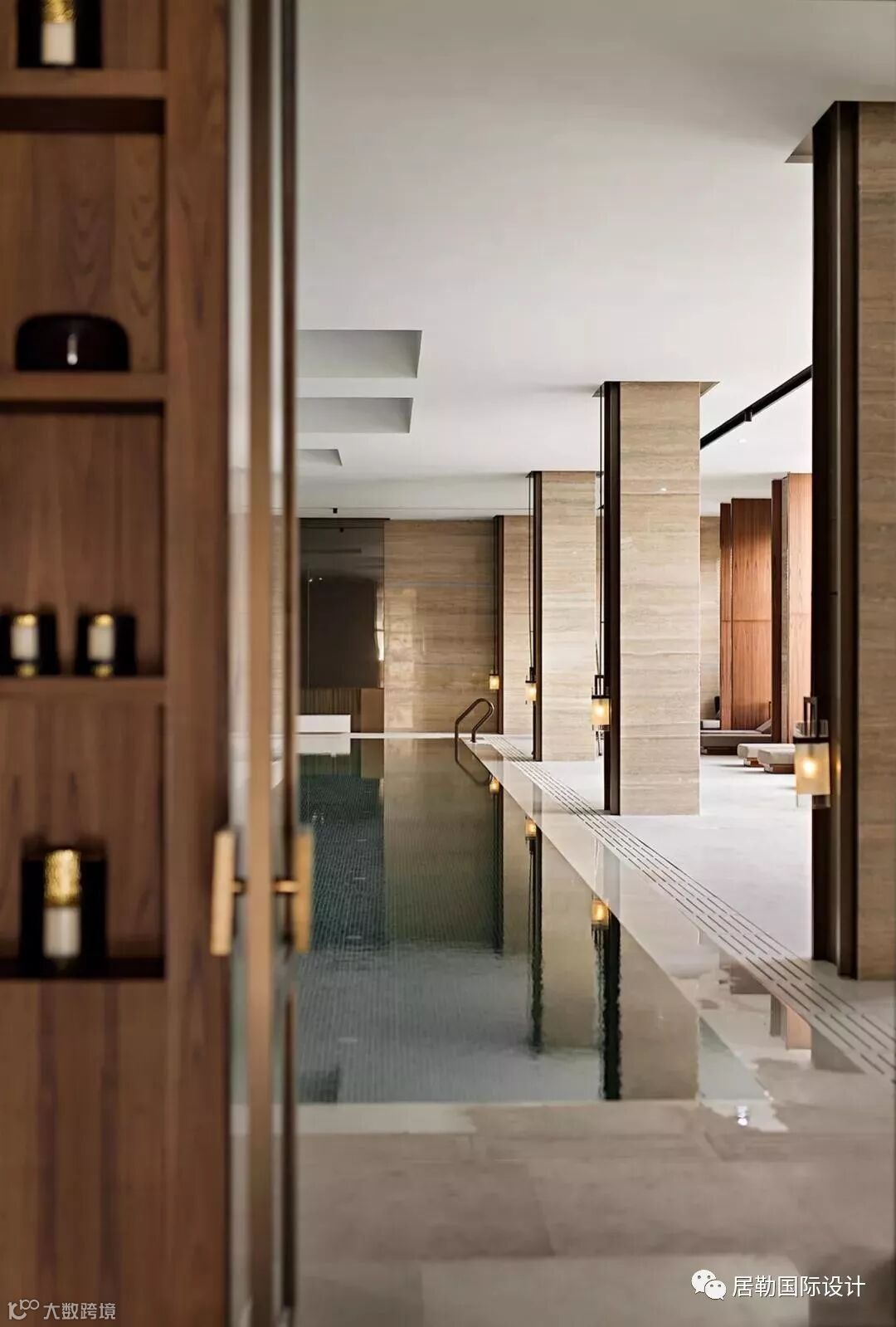 一层主建筑副楼恒温泳池是提供给住宅用户使用的会所型管理物业,作为住宅附属设施的公共泳池,希望是能给业主打造一个休闲放松、温暖自然的柔和空间。