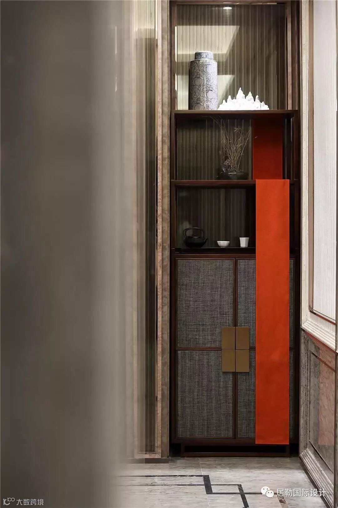 传统的东方理念讲究意境,是“人在画中游”的闲情逸致。一席红帘从天而降,峰回路转之处竟出现这样一抹醒目的中国红,即使是走廊一角也显得妙趣横生,不觉地就被带入了这所房子的情绪:宁静却从不缺少趣味。