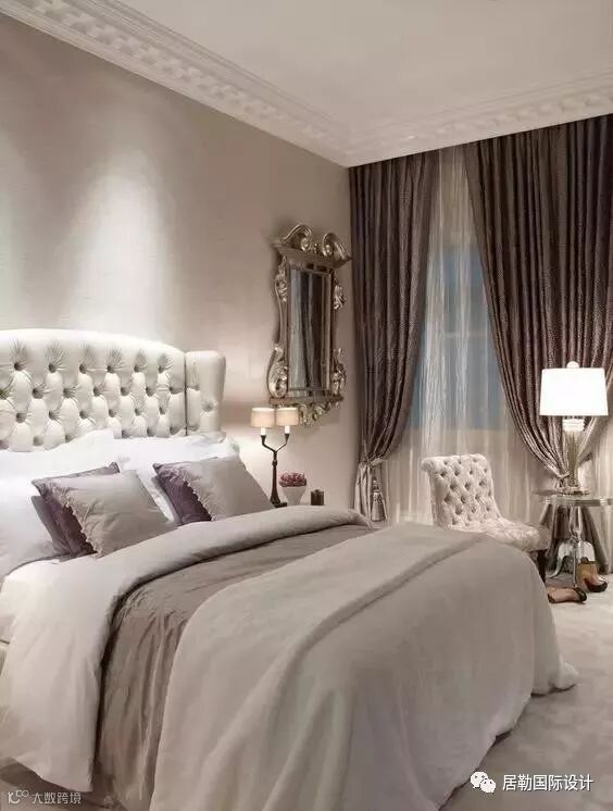 卧室窗帘也可以根据房间的朝向做出选择,南向卧室可以选择挡光、隔热、隔音效果比较好的绒面材料窗帘;而北向卧室的窗帘就相对来说“随便”一些,只要注意隔音和挡光性即可。