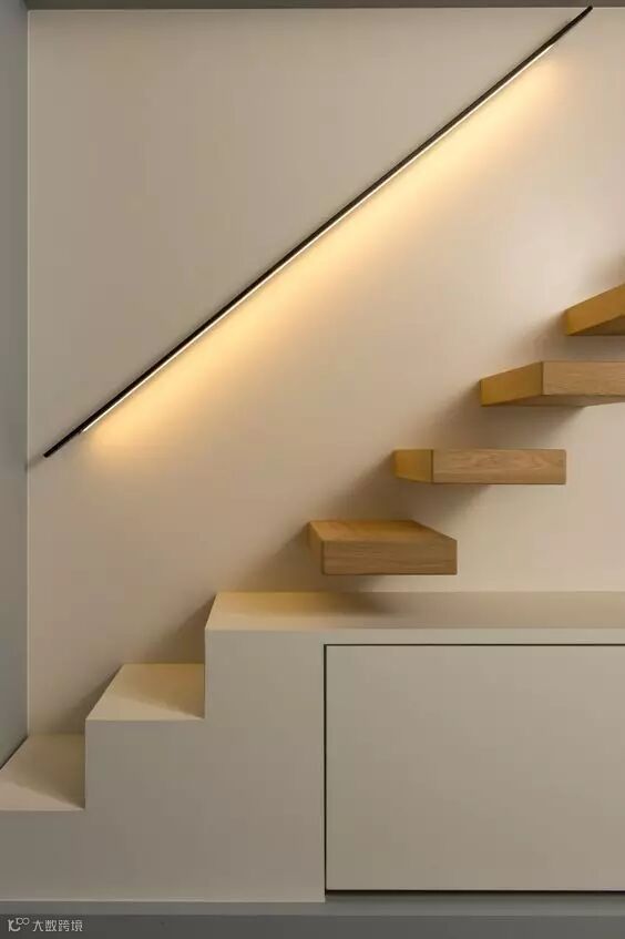 一个楼梯扶手下的灯带