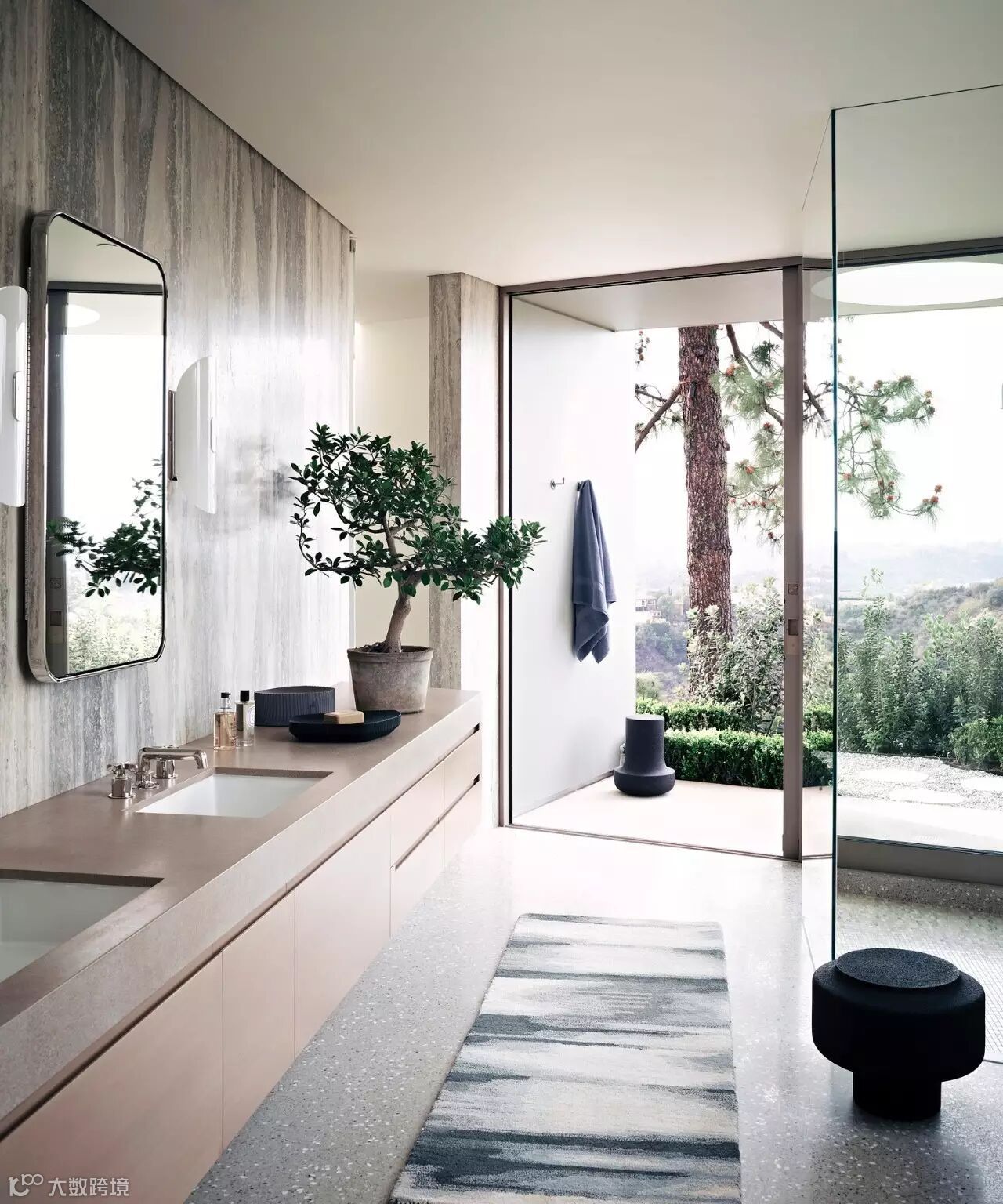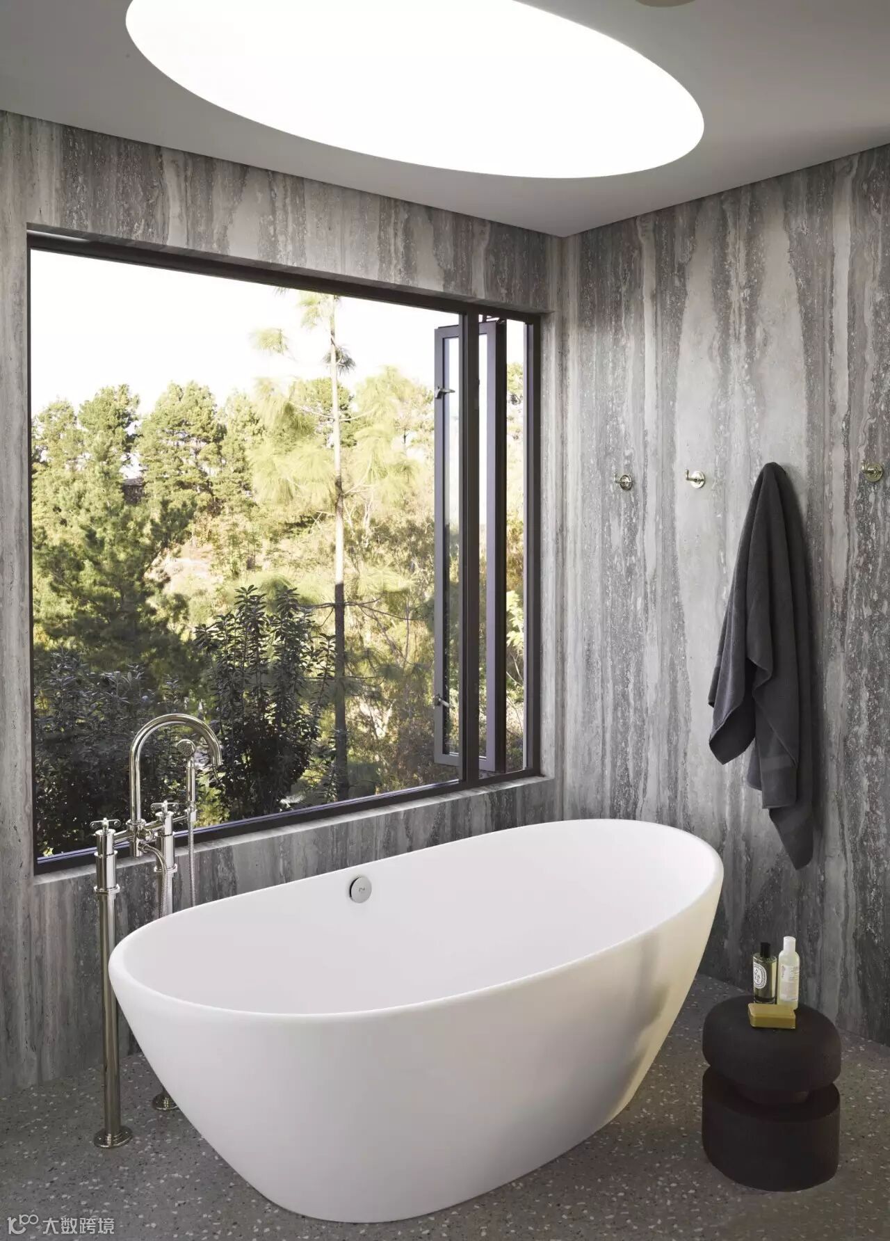 主卫生间的灰白色的大理石与