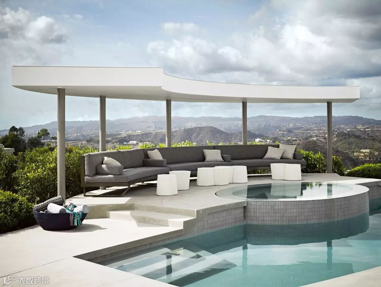 泳池旁的亭子又了更精致的家具