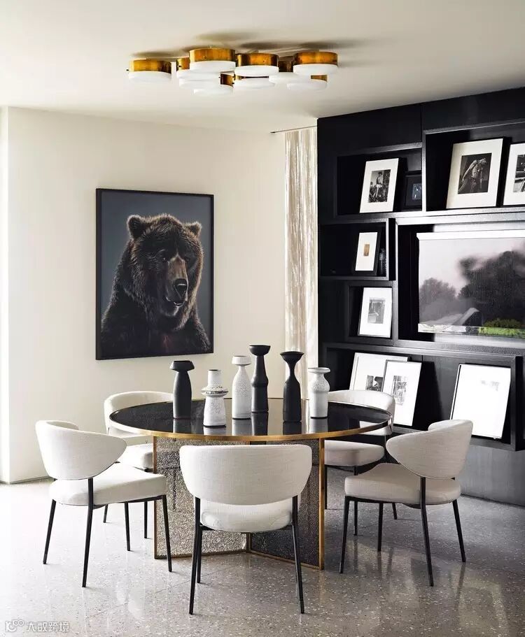 与黑白的照片和电视墙组合在一起