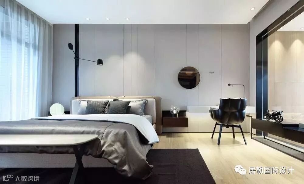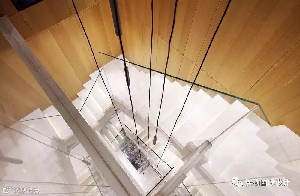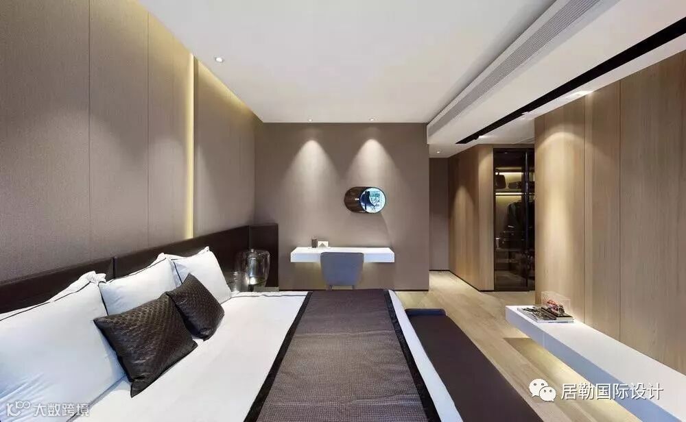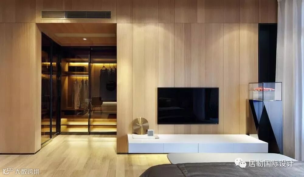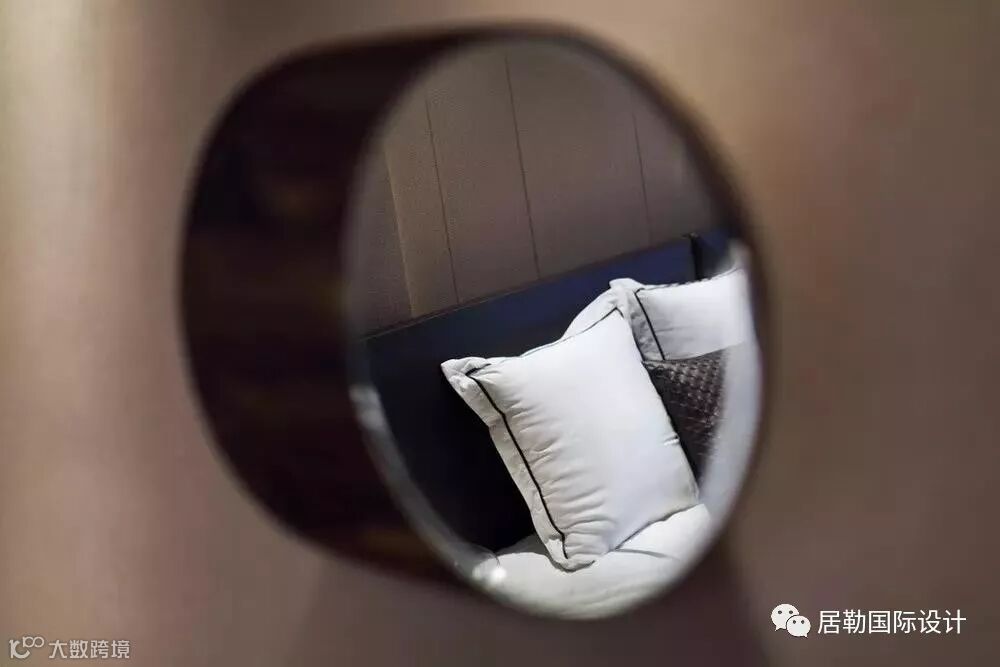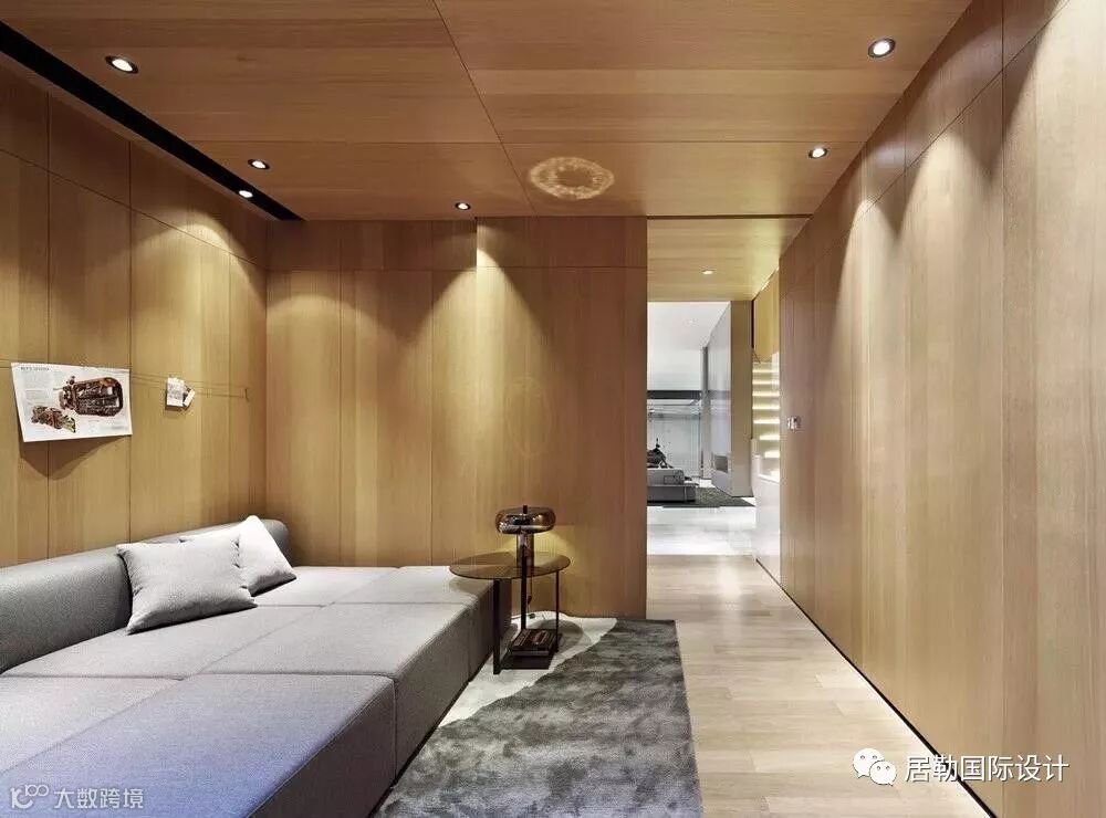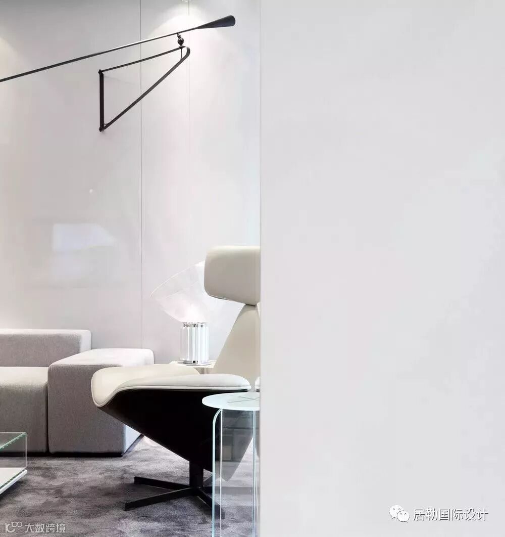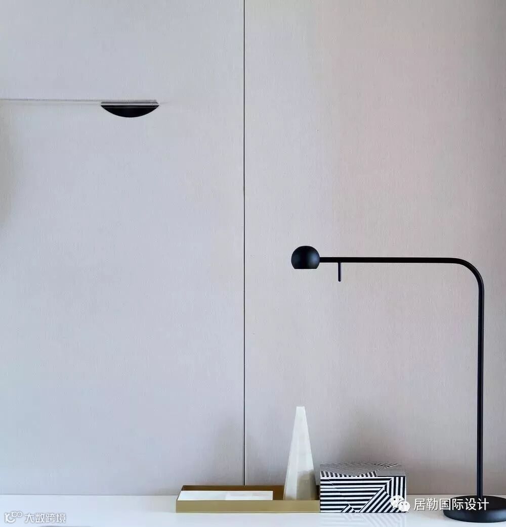 一方面通过使用灯光和材质的变化营造同一色系和不同色系的微妙变化,另一方面通过相应的线条将立面和天花作不对称切割,将灯具作为能够活泼空间关系的点和线融入到空间当中,赋予空间活泼的趣味。