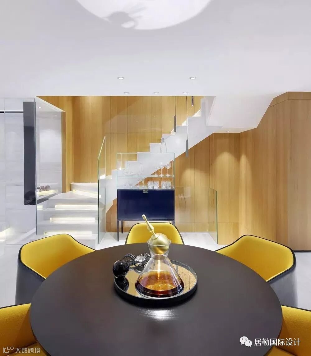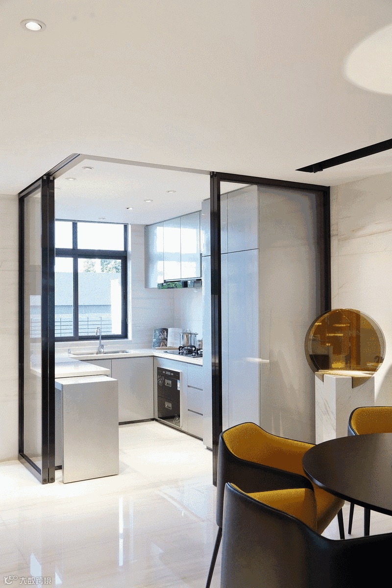 整体设计,设计师以黑白灰为设计格调,但纯粹的黑白灰关系会使住宅环境给人以冷冰冰的感受,因此设计师同时将变幻的黄色和灰色调子作为穿插,既让空间流畅简洁,又赋予其温馨的居住气氛。