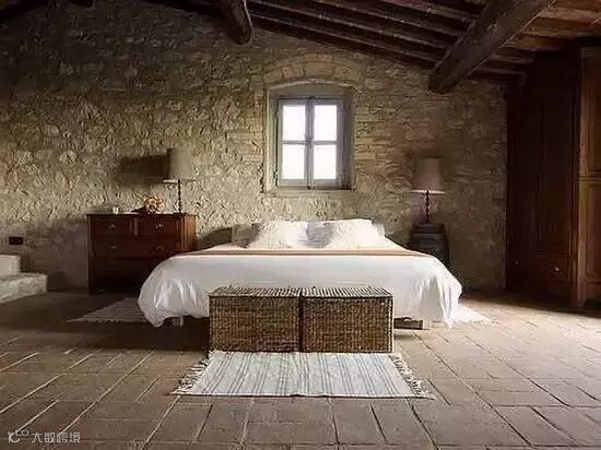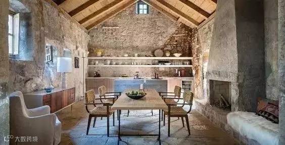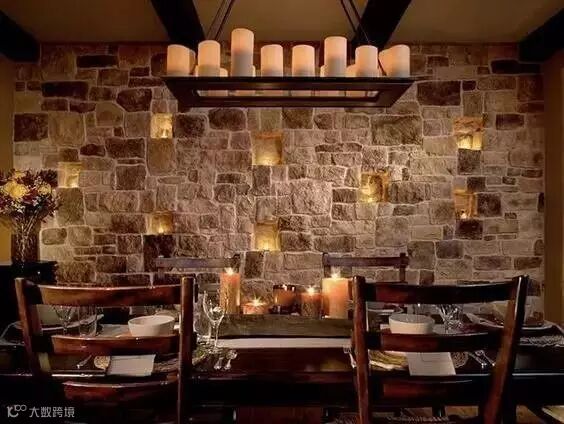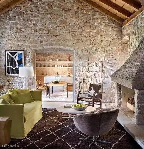 由于毛石是岩石经爆破后所得的形状不规则的石块,因此对毛石的选择也要有一定的讲究。用作墙体的毛石要讲究一定的平整度。这样的毛石墙体与精致的家具相比,虽然有一定的视觉冲击,但又不会失衡,给人带来新奇的效果。