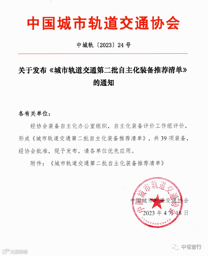 2023年4月27日,中国城市轨道交通协会组织的“《城市轨道交通第二批自主化装备推荐清单》发布会暨数字化转型与智能装备论坛”在中铁青岛世界博览城会议中心成功举办。