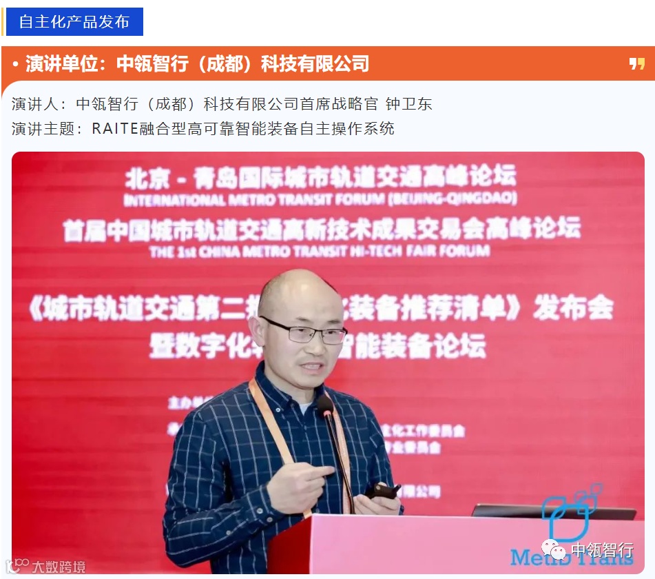 经中国城市轨道交通协会装备自主化办公室组织,自主化装备评价工作组评价,本次共39项自主化装备形成《城市轨道交通第二批自主化装备推荐清单》,中瓴智行“RAITE融合型高可靠智能装备自主操作系统”入选,这也是中瓴智行继“基于自主研发的Type1型嵌入式虚拟化操作系统睿钛RHOS”入选第一批自主化装备推荐清单后的再次入选。