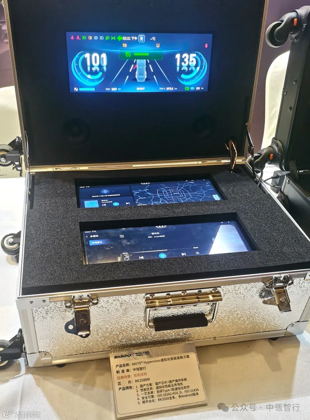 展会期间,中瓴智行展示的RAITE® Hypervisor虚拟化智能座舱方案基于瑞芯微RK3588M芯片平台,其强大的处理能力以及丰富的接口支持为用户提供了多样化的车载体验,可以适配多种复杂的座舱应用,支持车辆控制、信息娱乐、驾驶辅助等功能。该方案支持RK35XX全系以及多Android版本,虚拟化性能业界领先,可以实现一芯多屏,并通过了ISO26262 ASIL-D功能安全体系认证以及ISO 21434标准,安全可靠。