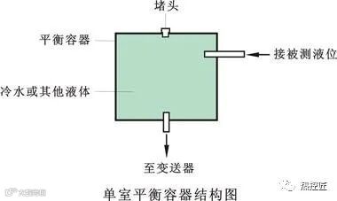 用双室平衡容器测量锅炉水位,双室平衡器的外层容室与锅炉汽包的蒸汽相连,外层容室内充满了冷凝水;当外层容室的水面低于平衡器上端导压管时,靠汽包蒸汽的冷凝水补充,当水面高于平衡器上端导压管时,水经导压管流入锅炉汽包,使外层容室水位高度始终保持不变。内层容室经平衡器下侧导压管与锅炉汽包的水相连,其水位高度随汽包的水位变化而变化。如果蒸汽的压力、温度参数恒定时,差压变送器的输出信号仅与锅炉汽包的水位有关。