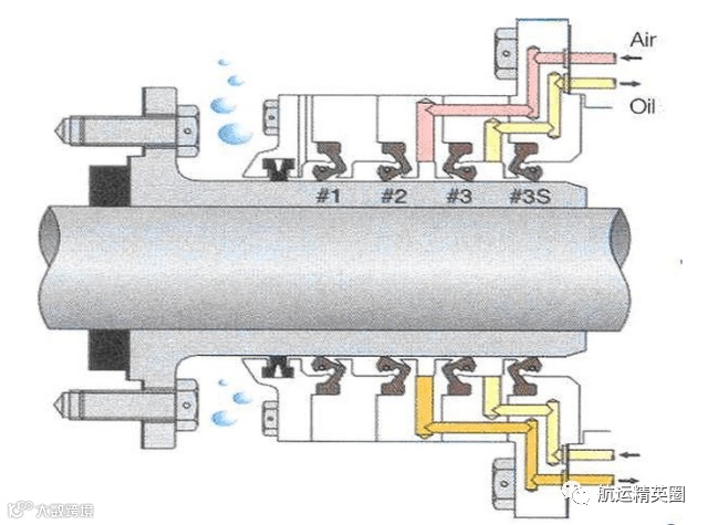 尾部的4组密封圈两组往前翻,两组往后翻。它们责任重大,既要防止海水涌入,又要防止滑油泄漏到海中污染环境。#3S号密封圈是备用,当#3号密封圈故障时切换使用。