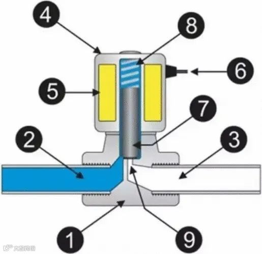 看了动态图之后,是不是发现电磁阀的工作原理非常的简单呢!电磁阀未上电时,阀针在弹簧的作用下,将阀体的通道赌住,电磁阀处于截止状态。当线圈接通电源时,线圈产生磁力,阀心克服弹簧力向上提起,阀内通道打开,电磁阀处于导通状态。