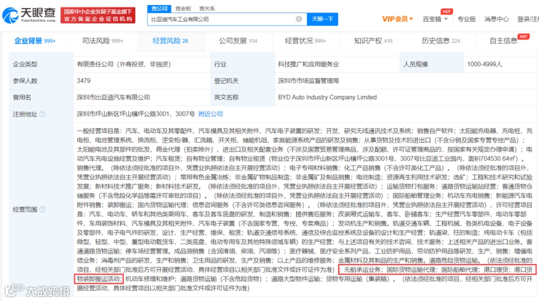 天眼查显示,12月20日,比亚迪汽车工业有限公司发生工商变更,