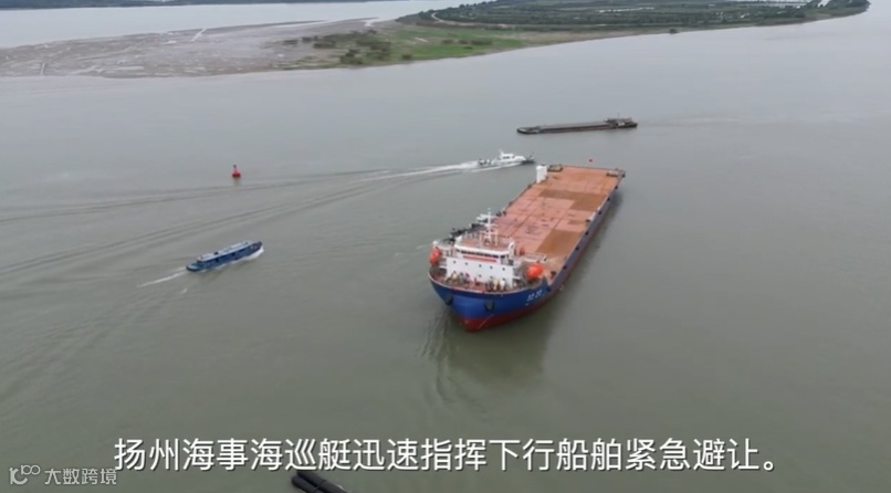 扬州海事局迅速调整临时交通管制措施,两艘海巡艇现场维护交通秩序,指挥应急拖轮顶住船身,最终将该新造船安全拖带至舾装码头。