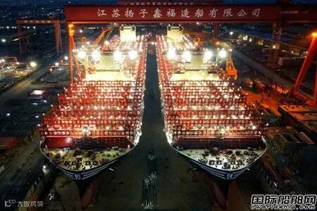 ▲上图:扬子鑫福厂区,在建中的首批24000TEU集装箱船。( 姚永春 / 摄)