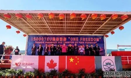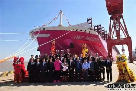 10月12日中午,扬子江船业集团旗下新扬子造船为全球最大独立集装箱船船东SEASPAN建造、日本海洋网联船务(ONE)承租的首制15000TEU集装箱船“ONE FREEDOM”轮交付离厂,开启首航。