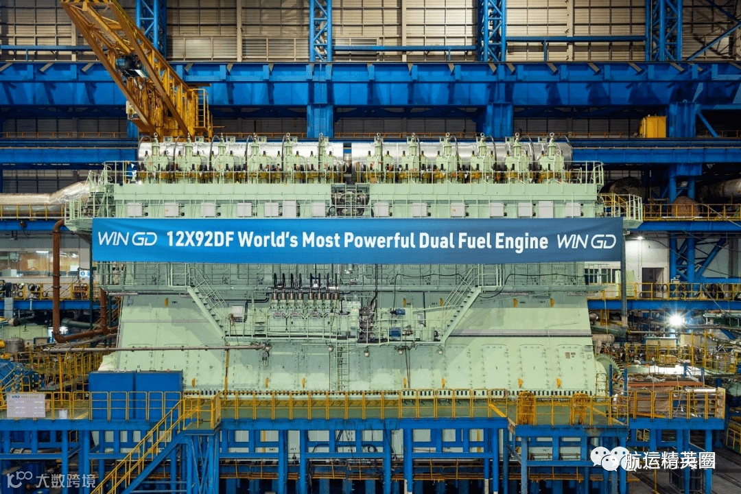 本轮主机使用目前世界上最大的船用双燃料低速主机 CMD-Win GD 12X92DF, 集超大功率,智能控制,绿色环保于一体。其MCR达到了63840KW x 80.0RPM,在燃气模式下,采用奥托循环原理,低压燃气进气技术,满足目前最严苛的国际海事组织Tier III排放标准。