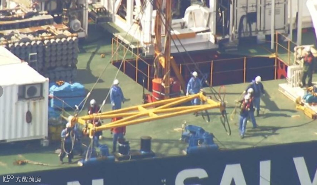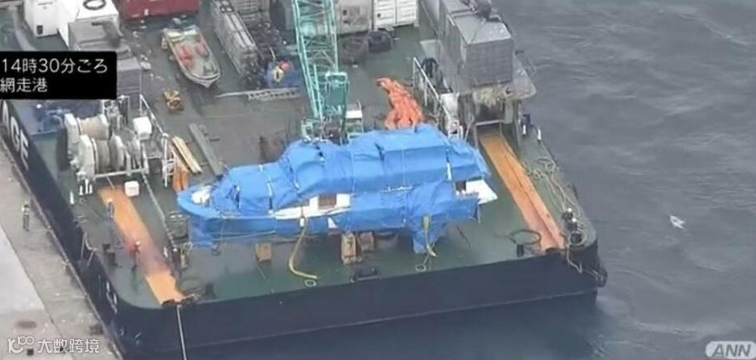 与海上保安厅签订打捞合同的专业公司“日本Salvage”26日晚上6点55分左右将船体吊至海面,将其固定在“海进”左侧拖行至较浅海域。随后用起重机将包裹着蓝色罩布的船体缓慢从海面转移至作业船上,27日凌晨3点20分左右完成吊装。