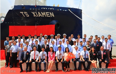 7月8日,中国船舶集团旗下中国船舶工业贸易有限公司联合中船黄埔文冲船舶有限公司为德翔海运股份有限公司(TS LINES)建造的第二艘1900TEU集装箱船“德翔厦门(TS XIAMEN)”轮(H2390)命名交付。