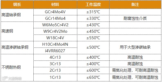 轴承材料及工作温度一览表