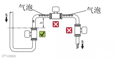 当出口为放空状态时,传感器不应安装在管道放空之处,应安装在较低处。传感器安装在管道下方处时,应保证传感器内被液体充满,不能出现空管状态。